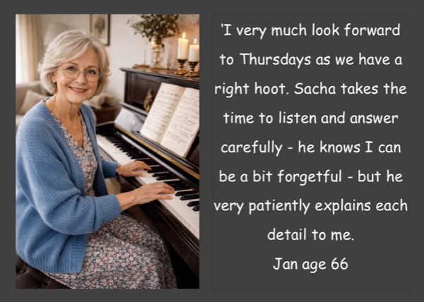 Sessions are based in your own home - so owning a piano/keyboard is essential.